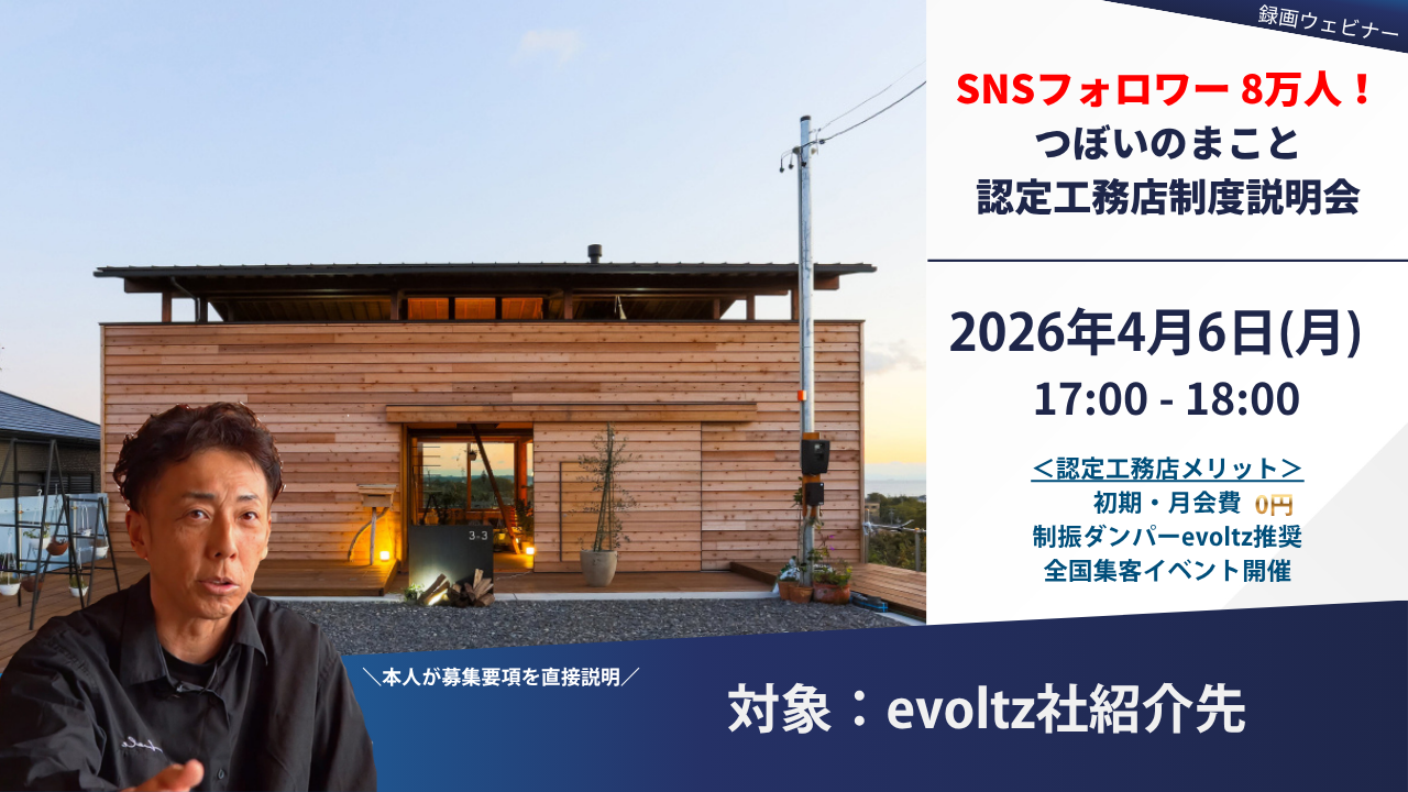 本説明会では、つぼいのまこと本人が、これからの時代に工務店が選ばれるための「答え」と、認定制度の具体的な活用方法を詳しく解説したセミナー映像を特別に公開いたします。